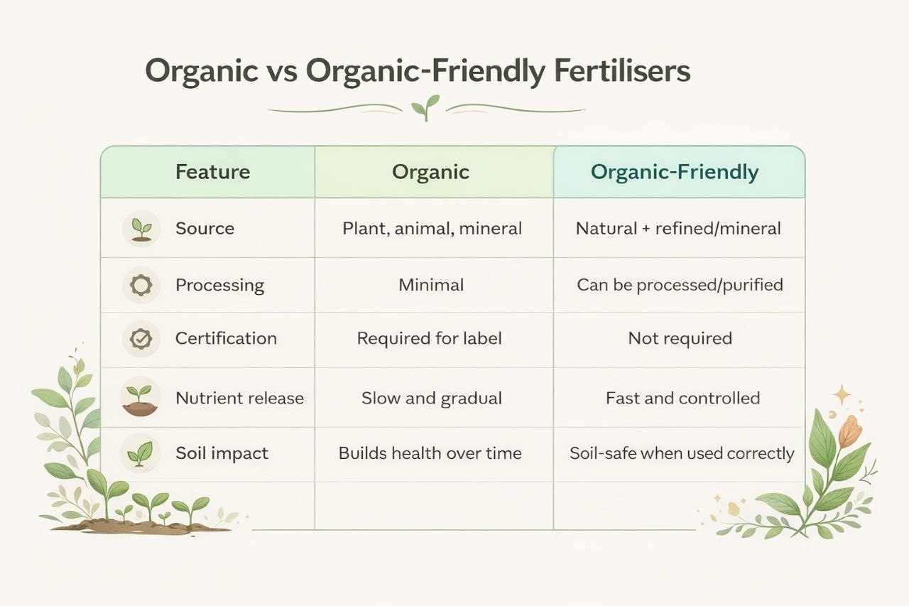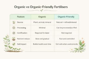 If you’ve been comparing fertilisers, you’ve likely seen the terms “organic” and “organic-friendly” used across different products. While they sound similar, they are not the same, so choosing the right one can make a significant difference in plant health, soil quality, and overall results.
